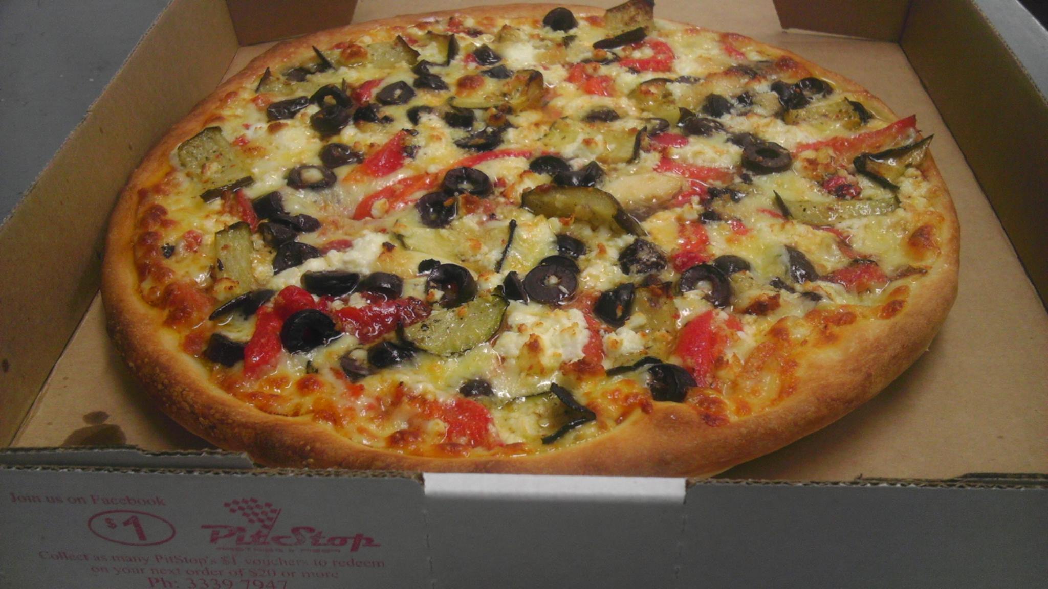 PitStop Pizza – PitStop’s Specialty Pizza – homemade pizza sauce, mozzarella, mushrooms, pepperoni, hot or mild sausage, Kalamata olives, artichoke hearts, garlicTraditional Homemade Beef LasagneVegan Apple PieBurekVegan Cherry PieFreshly baked ciabatta bread served with ChevapiPitStop’s Nutella Calzone – pure heaven!Australiana Pizza – hand stretched pizza dough with home made pizza tomato sauce, tasty mozzarella, mushrooms, bacon, egg, fresh tomato and onionPizza di Zucca (Vegetarian) – homemade pizza sauce, mozzarella, pumpkin, eggplant, sundried tomato, fetaGarlic Pizza BreadCustom made pizzaHomemade Vegan Apple Pie – made with PitStop’s hand stretched filo pastry sheetsSmokey Chicken Pizza – homemade pizza sauce, mozzarella, smoked succulent chicken, mushrooms, fresh tomato, onionGreek Pizza – homemade pizza sauce, mozzarella, pepperoni, hot or mild sausage, Kalamata olives, feta, garlicAustraliana Pizza – homemade pizza sauce, mozzarella, mushrooms, bacon, egg, fresh tomato, onionNUTELLA Calzone dusted with icing sugar YUMMY!NUTELLA Calzone dusted with icing sugar YUMMY!Vegan Bruschetta Pizza – homemade pizza sauce, fresh tomato, onion, garlic, basil, oregano, Kalamata olives, vegan cheese on topFerdinando Pizza – homemade pizza sauce, mozzarella, smoked beef salami, mushrooms, spinach, ricottaVegetariana Pizza – homemade pizza sauce, mozzarella, mushrooms, fresh tomato, marinated roasted capsicum, onion, Kalamata olivesPizza Veronese – homemade pizza sauce, mozzarella, prosciutto, mushroomsDiavola Pizza – homemade pizza sauce, mozzarella, pepperoni, hot sausage and jalapenos (Hot)Peanut Baklava RollsVegetariana Pizza – homemade pizza sauce, mozzarella, mushrooms, marinated roasted capsicum, fresh tomato, onion and Kalamata olivesMediterraneo Pizza – hand stretched pizza dough with home made pizza tomato sauce, tasty mozzarella, marinated roasted capsicum, zucchini, olives, feta and garlicPrune and Walnut Baklava (OUR OWN PERSONAL FAVOURITE 🙂 )Raging Bull Pizza – homemade pizza sauce, mozzarella, smoked beef salami, mushrooms, onion, fresh chilli (Very hot)Burek – choice of cheese / spinach and feta or beef filling A traditional serbian dish with origins in Turkish cuisine. It is very popular in many countries in the Balkan region (especially Serbia, Montenegro, Macedonia, Croatia and Bosnia). In Israel this food is also fairly popular under the name “burekas”. It is known as a family of hand stretched thin flaky filo dough filled with a variety of different fillings and then baked.Vegetarian Pizza with extra topping of pineappleRaging Bull Pizza – home made pizza sauce, mozzarella, smoked beef salami, mushrooms, onion and fresh chilli – Very hotMarinara Seafood Pizza – homemade pizza sauce, mozzarella, smoked salmon, shrimp, tuna, anchoviesHomemade Vegan Cherry Pie – made with PitStop’s hand stretched filo pastry sheetsPepperoni Pizza – homemade pizza sauce, mozzarella, pepperoni, marinated roasted capsicumAlmond and Cinnamon BaklavaCheese Burek (feta & ricotta) – ANOTHER BALKAN SPECIALTYPrune & Walnut Baklava, Almond and Cinnamon Baklava and Peanut Baklava RollsQuattro Formaggi Pizza (Four Cheese Pizza) – homemade pizza sauce, mozzarella, ricotta, feta, parmesanCalzoneFour Meat Pizza – homemade pizza sauce, mozzarella, pepperoni, hot or mild sausage, double smoked ham, baconPeanut Baklava RollsPitStop’s BaklavasGLUTEN FREE Marinated Pizza – homemade pizza sauce, mozzarella, marinated roasted capsicum, zucchini, sundried tomatoes, artichoke hearts (can also be done VEGAN with vegan cheese)PitStop’s Chevapi – skinless mince meat fingers served on a homemade Ciabatta bread, kajmak, onion and roasted capsicumGarlic Pizza BreadTraditional Beef Lasagnes / Also available in vegetarianPitStop Pizza Salad – lettuce, tomato, marinated capsicum, olives, oregano – topped with crumbled feta and olive oilMediterraneo PizzaNutella CalzoneGarlic and Mozzarella CalzoneChevapi